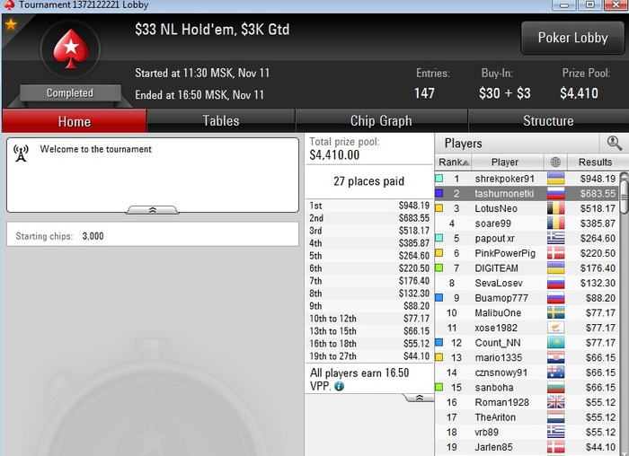 Pa1N @ 12.11.2015 Повторение - мать учения. Чиповал, но рассадка просто здец конечно. Не смог втащить, сыграл очень слабо в 4 макс, за что заслуженно вылетел. Но, когда-нибудь начну тащить, осталось опыта набраться.