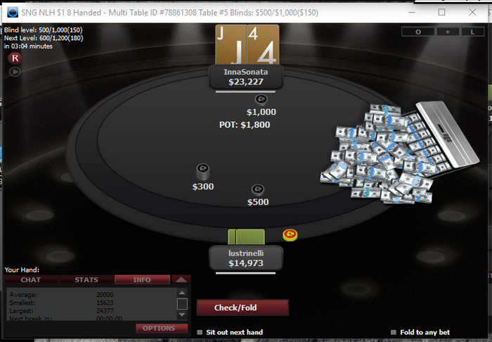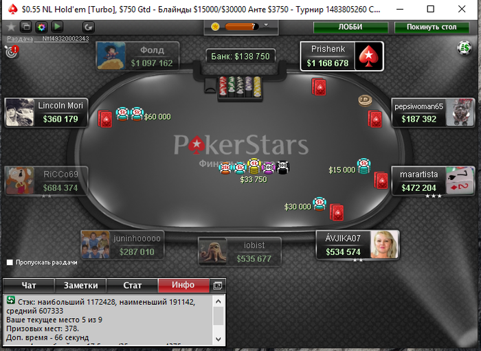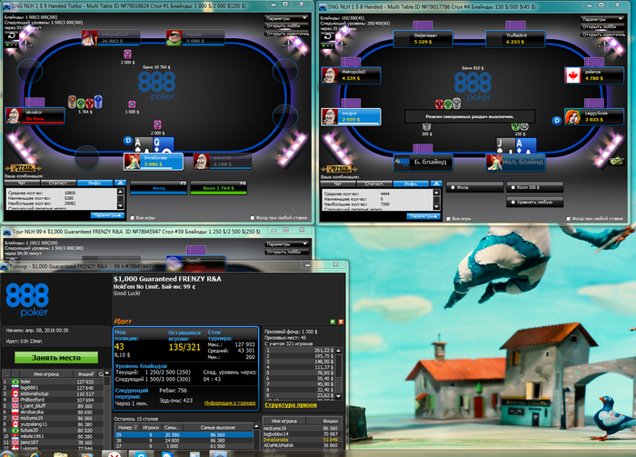 4. в минус 20 место 5. в минус 23 место 6. в минус 38 место. Здесь вообще жесть произошла. Первая рука, У мена JJ , у другого оппонента 88, в третьего 93о, все префлоп пуш. 93 забирает банк с 2 парами. Думаю на такой жести стоит закончить марафон. Продолжу вечером возможно