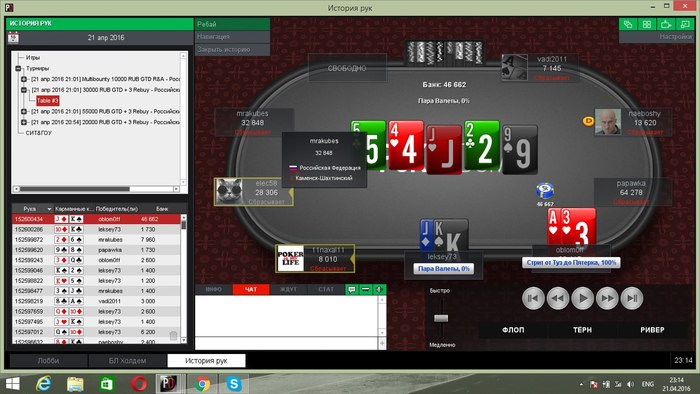 1) Хочу откатать SCOOPы, скорей всего буду продавать часть экшена на него. Так же после SCOOPов хочу полностью сосредоточиться на стабильной катке на PokerDomе, минимум 3 сессии в неделю с баинами до 330р. а так же пар-но немного катать кеш ПЛО 5р./10р. по подсчетам там немного плюсую. Ну и участвовать во всех местных оффах по мтт и кеш.)) Очень хочу найти книгу на русском языке автора Молли Блум "Игра у Молли", но пока безрезультатно(( Ну и конечно же учиться, учиться и повышать свой скил!) Благо есть отличный друг, который всегда подскажет что и где я ошибся(к его мнению я прислушиваюсь, т.к. считаю отличным игроком и понимающим игру). В общем вот такие планы на игру в мае!)) Надеюсь все сложиться и госпожа фортуна мне поможет, а я со своей стороны постораюсь не упустить шанс!