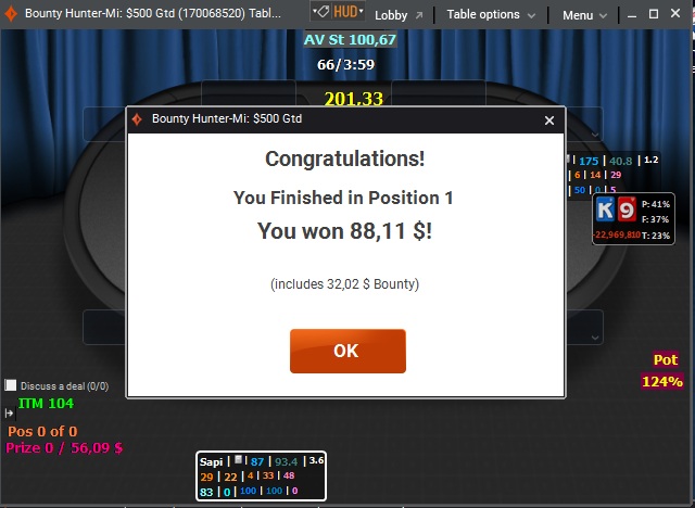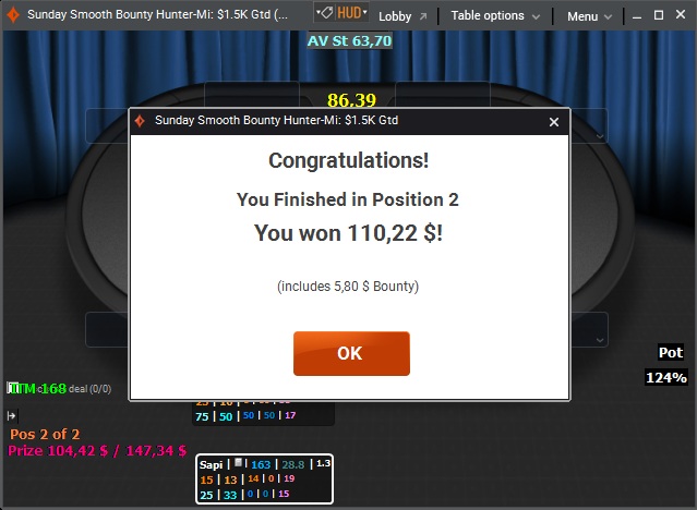 В третий день продолжилась полоса без ИТМ, в итоге после загрузки очередных столов БР был около $1. Но из 6 столов 2 шестых места, пятое, третье и первое немного выправили ситуацию и подняли настроение.