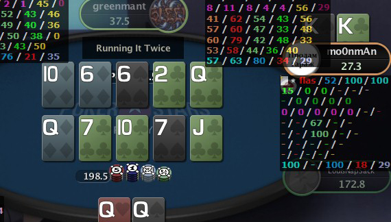 Может даже это было не так уж плохо, конечно, с учётом специфичности оппонента. Но, проигрыш именно этой раздачи почему-то вогнал меня в лёгкий тильт, и, из-за этого, я ещё потом поиграл хуже, чем мог бы. Возможно, не стоит так вот раскачивать лодку.