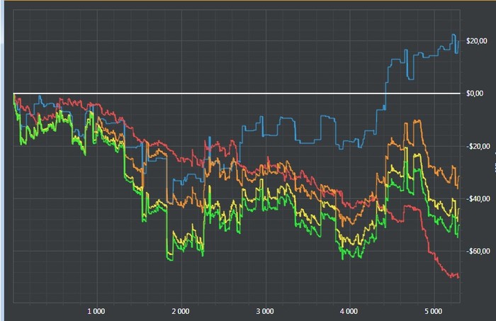 Я иду ко дну. Даунстрик и мои ошибки эффективно умножают друг друга. Оставшийся бр-250$. Если бр будет <200$, спускаюсь на нл5, наверное, на рег столы.