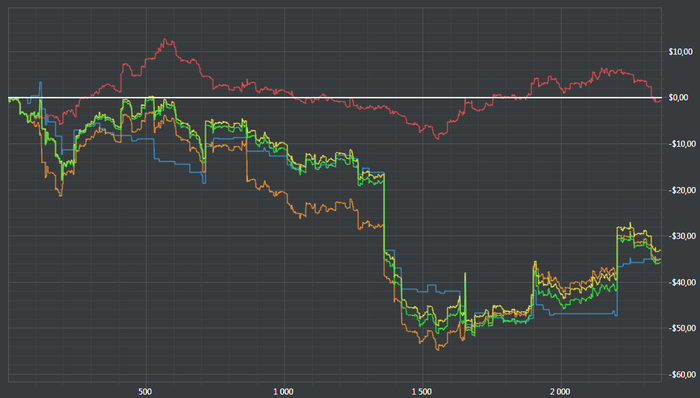 Не понимаю, правильный всё таки это был фолд или нет. Оппонент, который 3бетит - известный мне регуляр, помню, даже смотрел его стрим как-то раз. Сейчас он, вроде бы, не стримит. Игроки, который коллят мой префлоп рейз - фиши. По этой причине я решаю заколлить в позиции, не только на сет майнинг. Против фиша я бы конечно же стэкнулся на таком флопе. А тут - регуляр ставит, причём, он ведь знает, что фиш может запушить с каким-то говном, и знает, что я регуляр (я на это надеюсь, что я регуляр), и, что я бы мог сделать такой колл с -, (хотя кто-то и не всегда 4бетит, и, возможно, это правильно). И ещё он не особо агрессивный. Значит, довольно маловероятно, что там, например . А всё остальное меня бьет. Итак красная почему-то начала падать, прямо как раньше (может конечно, карта не идет), а тут ещё такие раздачи. Префлоп фолдить тоже как-то не очень круто, он ещё не сильно много 3бетил, и у меня итак фолд на 3бет стал высоковат, 69%, надо меньше фолдить на 3-4%, как минимум. Было сложна.