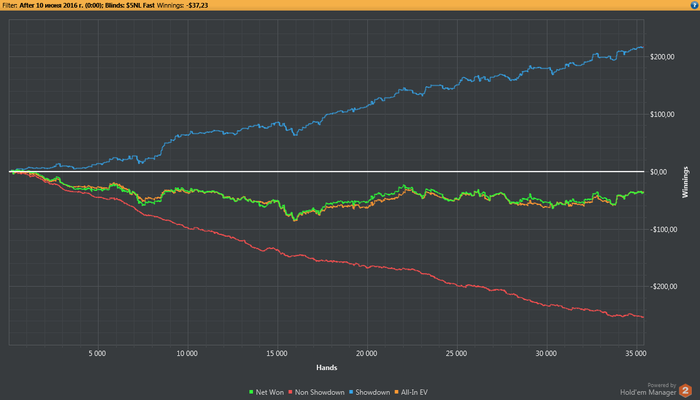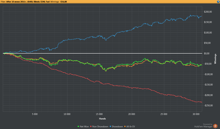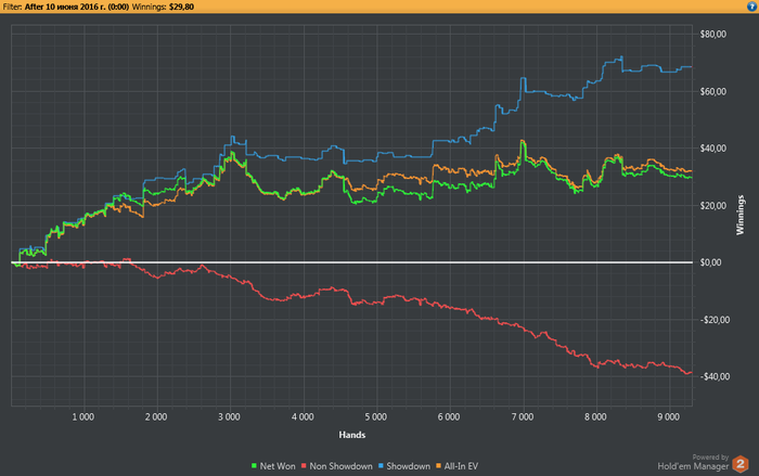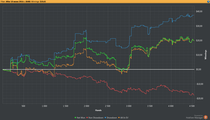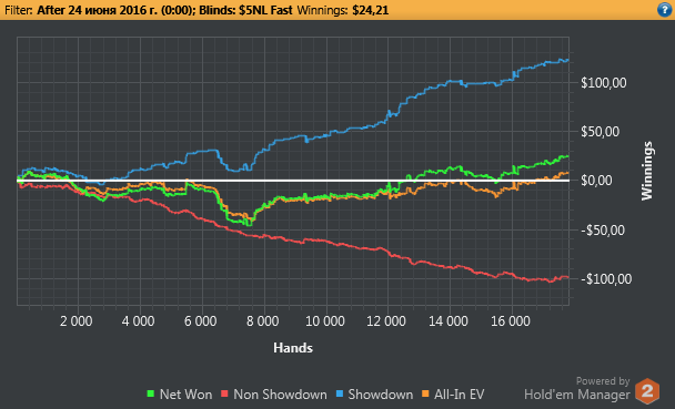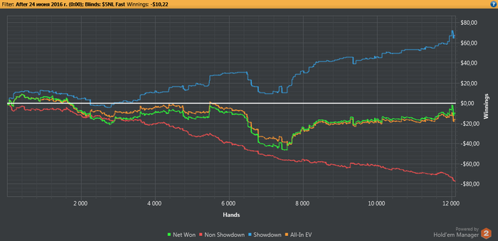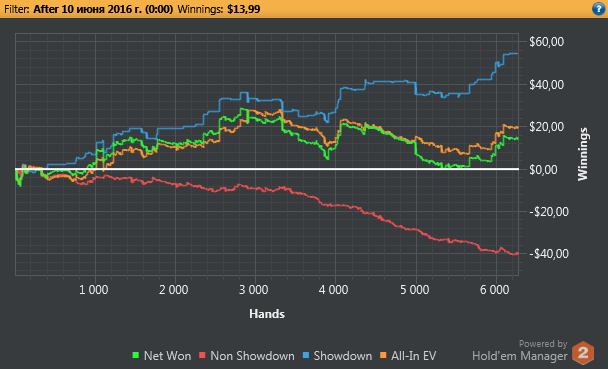 Катать дистанции в 100k в месяц я научился. Осталось научиться играть в покер. Планирую взять тренера в июле, но нет пока даже на первые занятия денег. А ещё посчитал ситуации = и обратные, так вот, сначала года я на 15 раз больше влетел королями в тузы, чем в меня. Отстой.