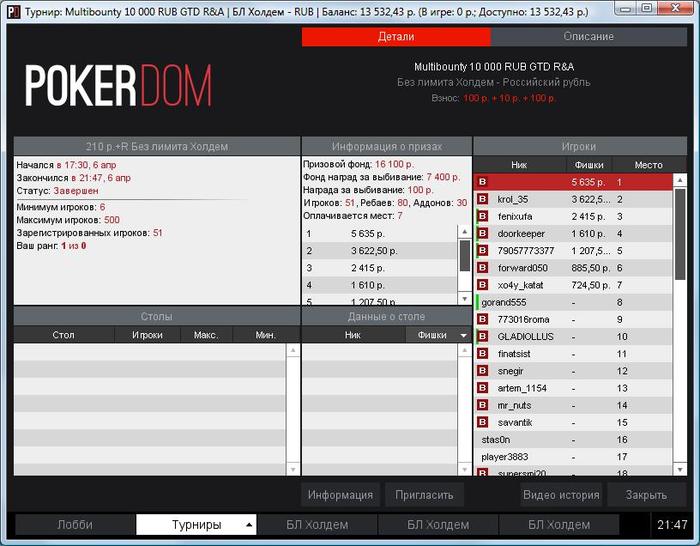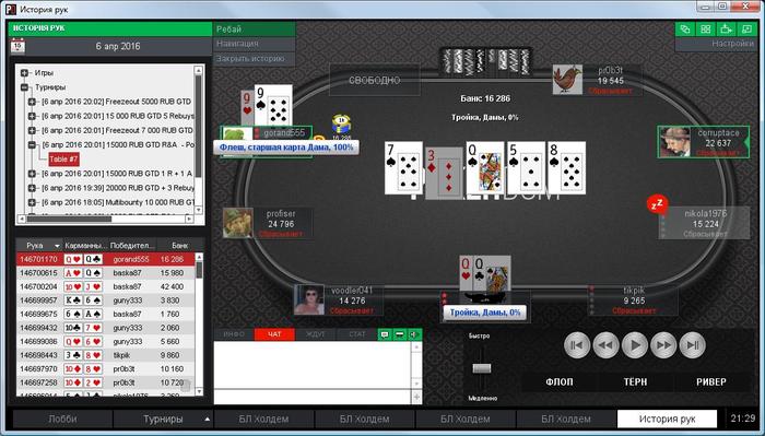 Nasti186, я уже жалею, что не сделал кол с дамами, а то я до сих пор играю этот турнир со стеком ниже среднего, и до сих не в ИТМ, а завтра надо на работу идти. Сделал бы кол, увидел бы там и спокойно пошел бы спать, рассказывая всем какой мне жестокий кулер раздали, или каким то чудом переехал бы их и играл бы с чиплидерским стеком имея шанс добраться до ТОП-3. Прикольно будет баблом вылететь в этом турнире)))