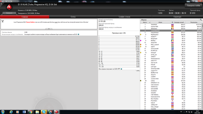 Катал сегодня еще нокаут за 5.5 и что вы думаете я сделал хоть один нокаут? Конечно же нет за 68 раздач карты приходили 1 раз против фиша и то я вскрыл его блеф)) Билдер 3.3 Первая раздача улетел с натсом) Вообщем все как всегда)