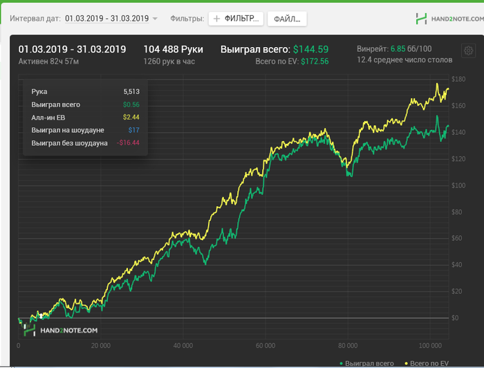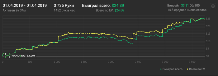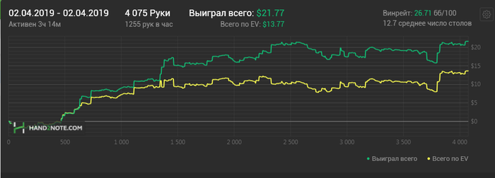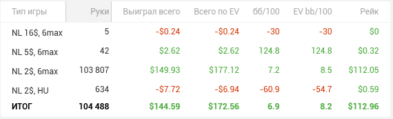 Ну и плавно перешли к покеру- 100К рук в месяц-дистанция вообще ни о чём, я понял, что подсознательно понимаю, что выполню поставленный самим собою же план, хотя треть дней в месяце просто не играл, так что в следующем месяце будет план в 120к рук(горячиться сильно не буду, лениться то тоже надо). Ну об этом позже, ещё надо будет составить отчётик с моими скромненькими результатами за месяц, а для этого надо таки доиграть эти чёртовы 100к рук😁 Всем мира!