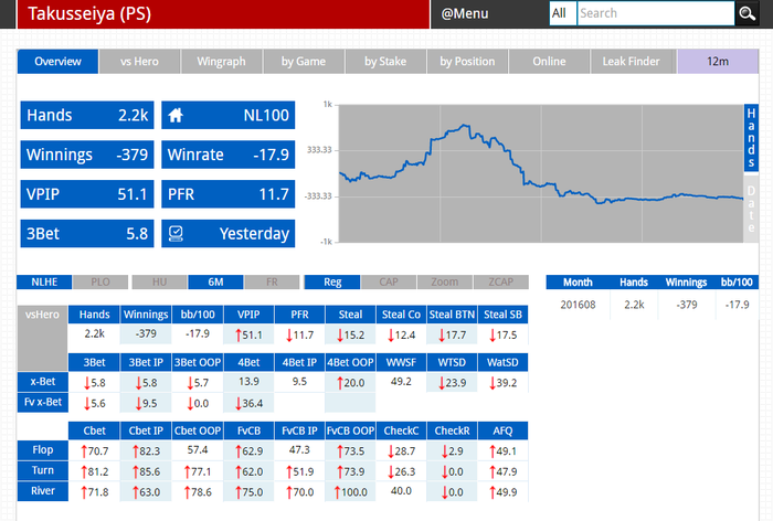 antonvs @ 19.8.2016 Я хуй его знает, может я параноик, но у меня ощущение что кто-то подгружает ботов агро фишей на нл50. Сегодня катал сессию заметил четырех персонажей (последний выпадает немного по статам, но рук на него было меньше всего) статы которых как мне показалось параноидально совпадают. Вторая строчка в попапе vpip/pfr/3-bet/fol to 3-bet/ SQZ Третья строчка в попапе ОР по позициям УТГ/МП/СО/БУ/СБ Пятая строчка в попапе первые два стата cbet/fold to cbet