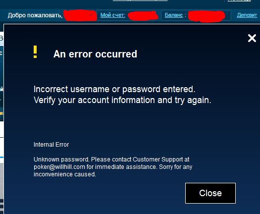 ВХ. Рум не пускает, а букмекерка с тем же паролем без проблем.