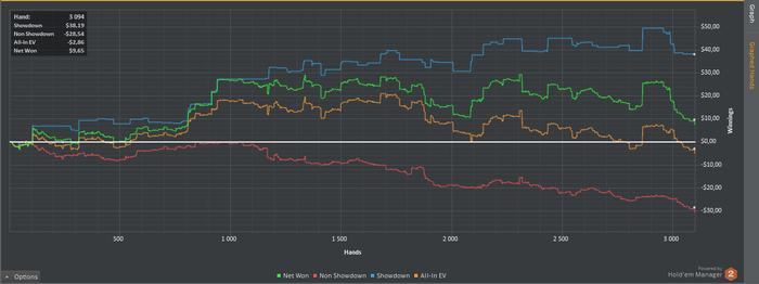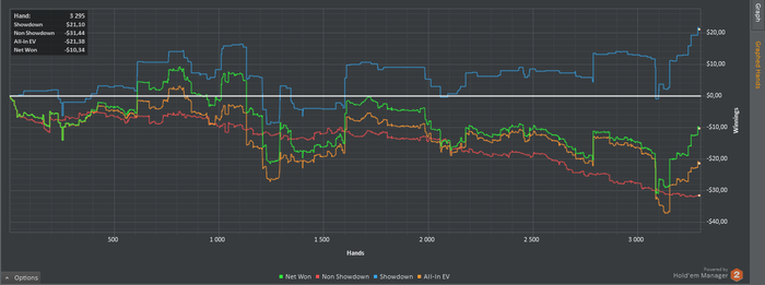 5. 14:40-15:40=60мин | 528 руки | ...-11,23.. | 52 | 5 с 10 | Comment: Годиться, отыграл нормально, без грубых, есть пограничне, но без них пока сложно. Карты нету и не складывается, и еще ЕВ умудрился схавать сильно. Review: AJo (EV);