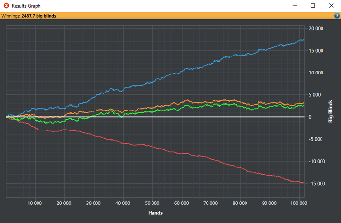 Хочется сказать, что помимо того, что Коля хорош в игре, он уже и хорош как тренер. На все вопросы были ответы с аргументированием своей точки зрения. Он научил работать меня во флопзилле (раньше у меня там только мои кривые префлоп ренжи были). Указал на кучу ликов в банках разных размеров. Первый месяц после тренировок я отыграл в 2.5бб/100 примерно в зум50, что считаю неплохим началом. + Оформил бестманс по деньгам и бестманс по количеству рук.