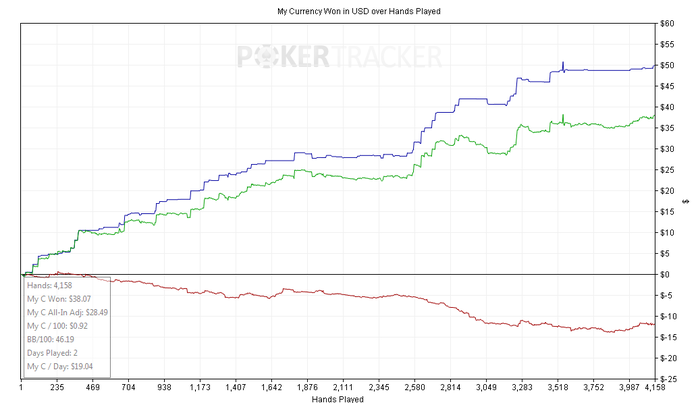 BB: 38.4 BB (VPIP: 62.50, PFR: 20.83, 3Bet Preflop: 20.00, Hands: 26)