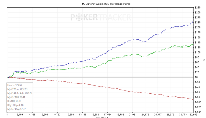 SB: 100.4 BB (VPIP: 28.77, PFR: 22.20, 3Bet Preflop: 8.40, Hands: 11,232)