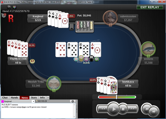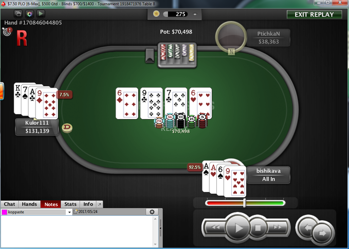 dews86 @ 27.5.2017 Как я тебя понимаю. Поймал на флопе фулл, на терне выставились в туре PSKO 7.5, ну и ривер такой ривер