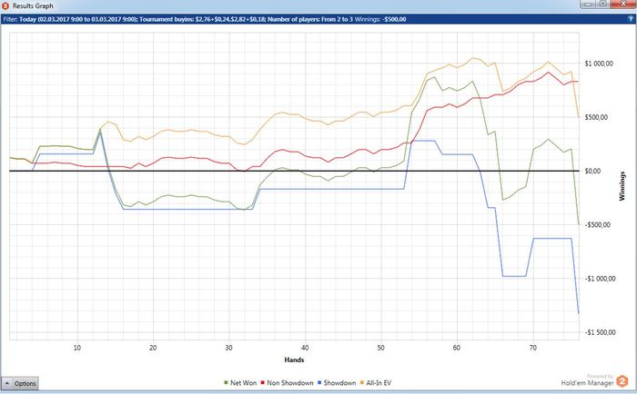 Poker Stars, $2.76 Buy-in (15/30 blinds) No Limit Hold'em Tournament, 2 Players