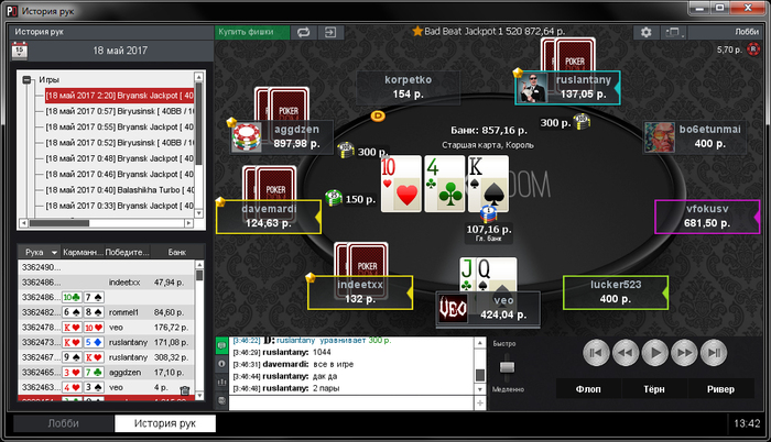 Часто садятся очень слабые игроки, которые могут с А хай на флопе без всяких дро выставиться на стек. Но как правило минимум половина стола - это игроки примерно моего уровня, которые так же катают много столов.