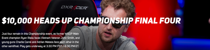 Лучший игрок в покер в мире Райан Рисс против ветерана Вьетнама Джонни Смита, а также Молодые звезды безлимитного холдема: Адриан Матеос-Диас против Чарли Карелла.