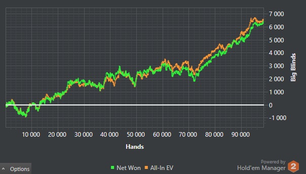 сыграно 137 часов, заработано ~1k с рб. результатом не доволен. сделал упор на количество катки, а не на качество, считаю это ошибкой. над теорией в этом месяце совсем не работал, не считая нескольких водов. хочу взять пару дней отдыха и подумать что делать дальше. есть мысли по поводу тренера, другого рума и перехода в 6макс.