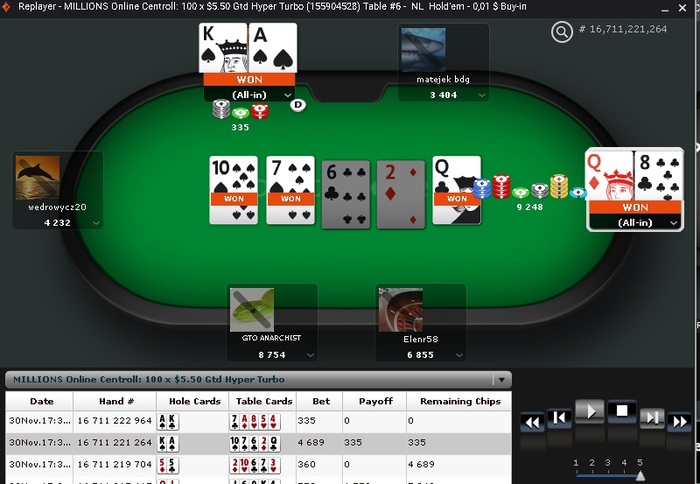 и кста катнул сеня с бабишариком, лакерный хахол, с бтн пихнул А4с, у мну на сб 10ки и на бб с КК заколили, уебал обоих, следом пихнул 106 в меня заколил , словил совпадение на флопе, а ему на ривере стрит...