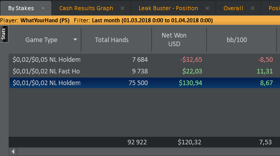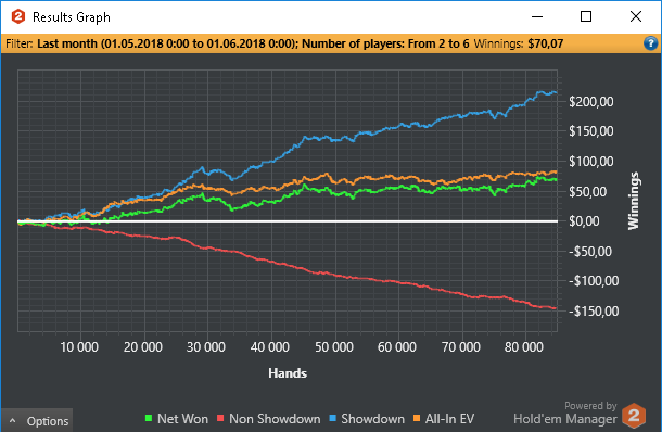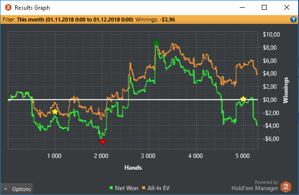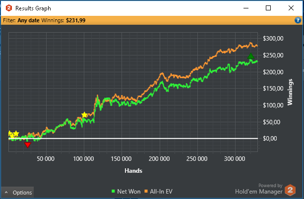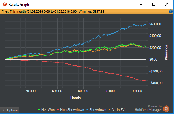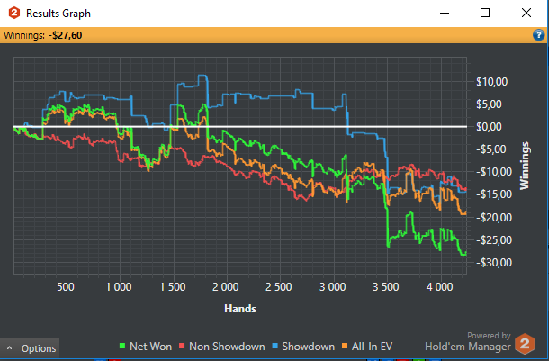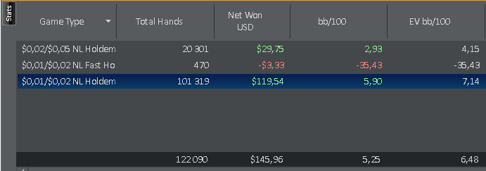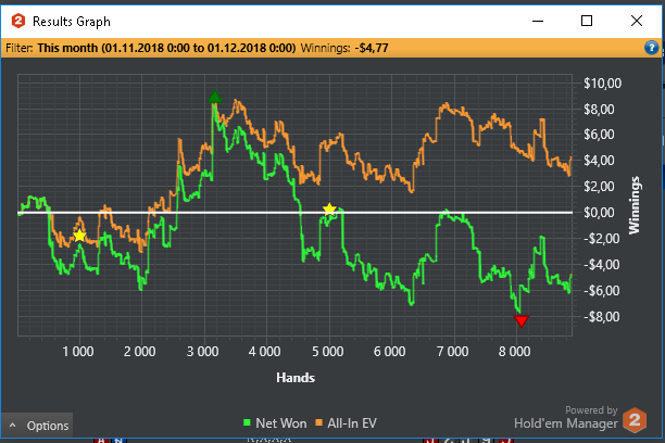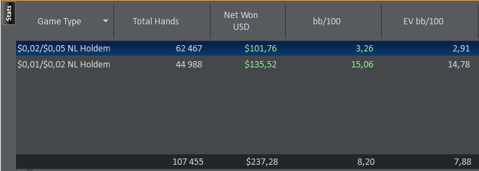 По планам на будущие играем нл5 и выжимаем хотя бы 5 евбб до 100 баинов нл10. Заняться покерной теории хоть не много (Ужас за все время что я играю с НГ выучил префлоп чарт) сыграть 150к рук. А так если накроет то нл2