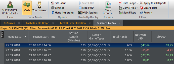 Давненько не постил результаты сессий.Особо много не играл,примерно 3-4т рук.