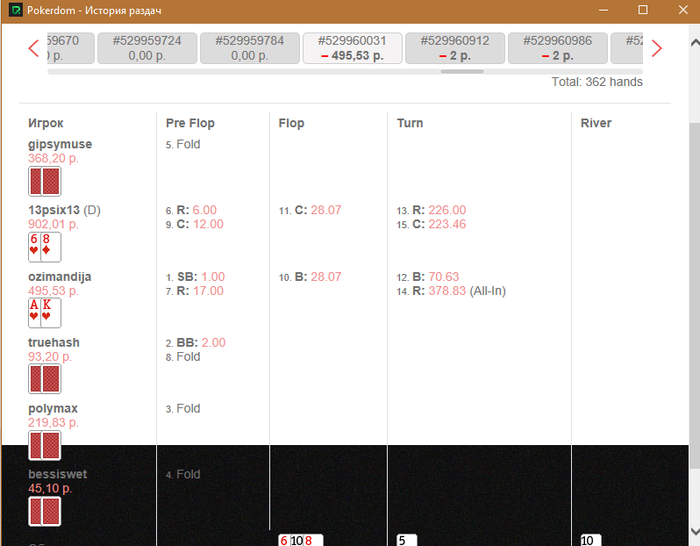 Ну что же, всякое бывает, сдаваться не буду, доиграю свои 1500К рук для Freeteamclub и попрошусь перейти на PS, т.к. со статистикой удобнее свои косяки находить, а так же там удобно раздачи смотреть.