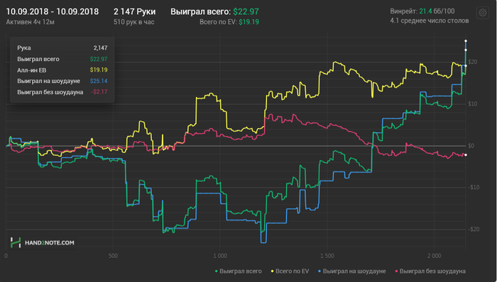 Из грустных новостей, вчера слетел hand2note, вся статистика на оппов пошла к чертям собачим. Во время сессии выдало ошибку, а уже после перезапуска я обнаружил абсолютно голый софт. Это хорошая возможность начать все заново.