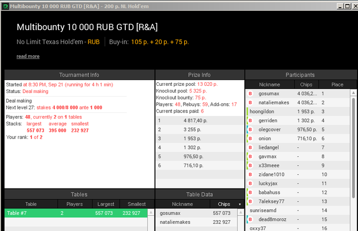 День 21 профит=11000р играл как обезьяна ,вчера забыл написать. Седня релаксую играю выборочно турниры в 6 столов максимум , попробую пересмотреть свои действия