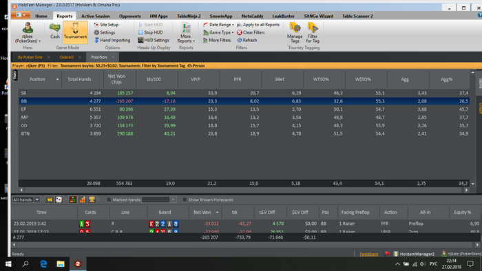 Я сильно не разбираюсь, сам пока в нете ищу инфу.очень мало рук,что б что то говорить.Мало стилишь блайнды,вроде три бет надо прибавить,в поздних открытие очень узкое, ну и переходить на лимит повыше побыстрее!