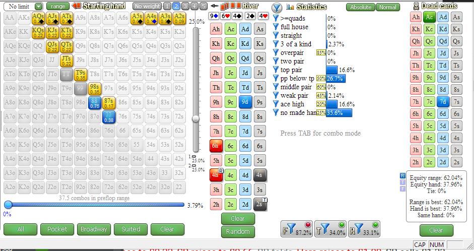 BB bets $0.37, Hero calls $0.37