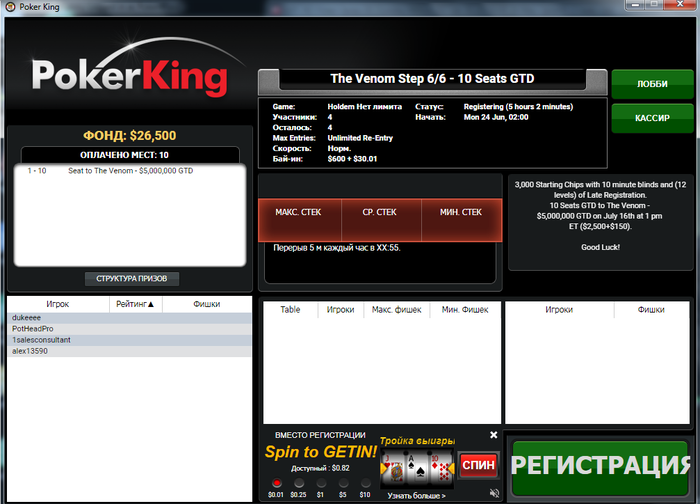 Зарегистрирован во многих(888,редкинг,покерок,unibet в последнем бан выдали сразу после регистрации т.к. игрокам из Кз нельзя там играть как оказалось), но играю сейчас в основном только в этих трех(Пати,ПокерКинг и на Старзах).