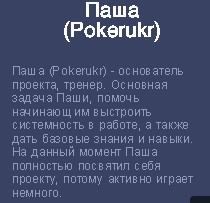 Но при этом я не позиционирую себя как тренера для игроков средних и высоких лимитов, который учит технической игре или сложным мувам.