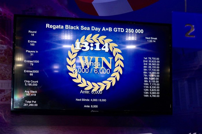 Покеристы отыграли 11 уровней турнира «Regata Black Sea made in Odessa Day A+B , Re-entry» 🔥