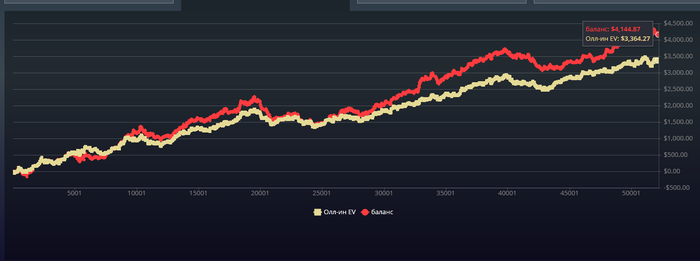 Куда-то подевались люди на которых у меня был нотс "гто боты". Может забанили? Или они на нл200 пошли. Но как-будто малость попроще стало, перестали все подряд чек-пушами на ривере пихать среднее шд велью. Хотя чё я пизжу, меня просто переапало нехило так. Если верить чудо графику из покеркрафта, весь профит это тупо передача. А ев типо в нуле выходит. Но хз как оно кешдроп поты учитывает. Но если оно всё считает правильно, то у меня большие проблемы. Меня с тем же успехом могло качнуть в другую сторону и раза так в два посильнее.