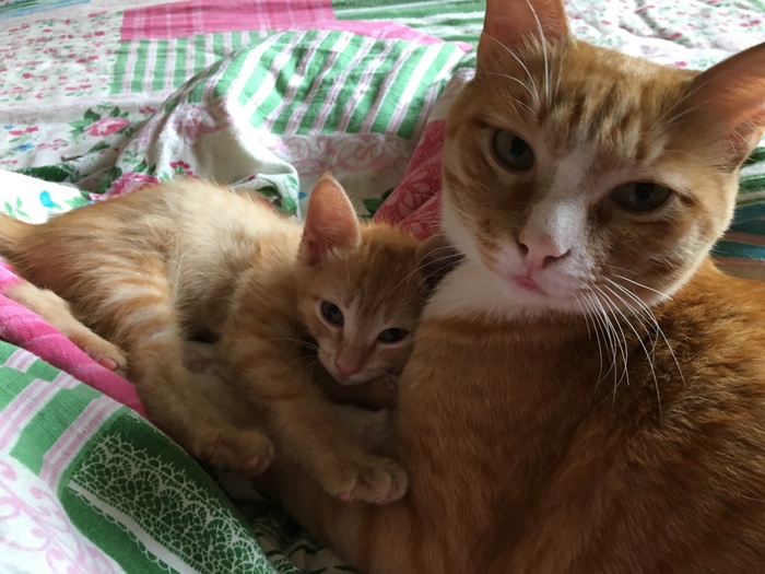 Я тут подумала и решила вам рассказать про историю моих хвостатых 🐱 В начале этого года я решила, что готова к самостоятельной жизни и переехала от мамы на съёмную квартиру . Месяц жила и радовалась своему собственному пространству , пока однажды не поняла : что в пустую квартиру возвращаться мне совсем не хочется . К слову сказать , я всю жизнь живу в окружении котов , поэтому было решено взять нового члена семьи . Неделю я убила на поиски : то звонила , а котёнка отдали , то телефон выключен , то котёнок в душу не запал (хоть и красивый , зараза). Было лишь одно желание : чтобы кот был рыжий . Как-то случайно в соц.сети наткнулась на приют , в котором увидела ЕГО : рыжего , толстого и очень печального взрослого кота. К черту сомнения, этот кот будет моим ! Спустя несколько дней общения с куратором Тедди и нашим с ним знакомством , я уже везла его в свой новый дом . Кот не отличался особой лаской и добротой : шкодничал, кидался , не давал себя гладить . Я не знаю , какая жизнь была у него до приюта , мне лишь сказали , где и в каком состоянии его нашли . В приюте он жил год, пока я его не забрала. Пыталась я переучить его от проделок разных, терпела его выходки , а потом поняла , что моей добротой он только пользуется . Тогда , вместо пряника , в ход пошёл кнут. Не била его , но ругала и закрывала в ванной за проделки . Полгода войны и кот стал совсем другим: более толстым , спокойным и слишком обожаемым . Эгоиста воспитала , одним словом 😂 Но вот незадача : когда возвращалась с другого города , мы тормознулись на трассе и обнаружили коробку с мелким котёнком внутри (тоже рыжим 🤤). Что делать?В охапку и домой ! Котёнок оказался девочкой с жутким стрессом (как позже выяснилось в вет клинике). Возраст - около месяца . Обезвожена и худая. Совместными усилиями , мы со старшим котом поставили девчонку на лапы 🐾 и откормили до нормального веса . Как бы не был эгоистичен старший кот , с появлением малышки , он очень изменился и стал еще более приветливым . Малышке было дано имя Терра от слова террористка , так как в силу своего возраста шкодничает она хуже старшего: то провод прогрызёт , то снесет что-то, то залезет на верх шкафа с помощью обоев и когтей. Теперь эти двое бесят меня , когда устраивают гонки ночами и радуют , когда играются вместе и заботятся друг о друге . Вот так мое доброе сердце и терпение спасли две жизни .