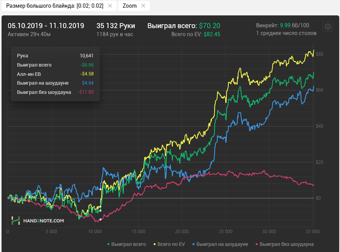 Мы знакомы с множеством прописных истин, закончил я с нл2, было довольно весело, учитывая что первые 12к рук откатал в минусовую. Потом вроде сообразил что да как нужно делать чтоб плюсовать. Хотя сегодня откатал 13ч, и последние часа 4 я просто афк жал кнопки, провалив красную на 3 стека и сделав парочку бездумных коллов на стек, а так в целом вышло не плохо.