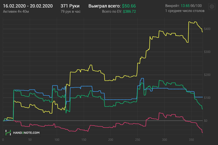 на данный момент откатал около 2к рук,отмазал минус от турниров и вернулся к изначальному банкроллу. Играл 4 стола пло10 и днем когда трафика на рег столах не было, подключал два стола зум. Освоился в мультитейблинге не туплю на 4х столах при довольно высоком впипе(в пределах нормы). Во второй сессии устроил сегодня тотальный разъеб,на всех столах было от 200 до 600 бб.