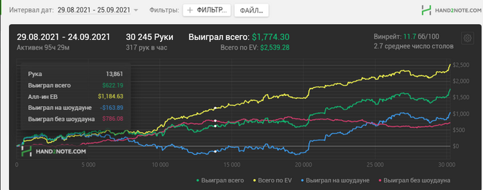 vesnoplyas, если ты перечитаешь внимательно,то увидишь,что я играл на тот момент nl100 накатывая дистанцию,но графики с результатами были с лимитов ниже. Так что манипуляций никаких не было.