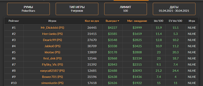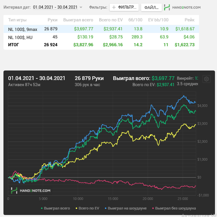 Поэтому получилось так мало рук, а еслиб сильно захотел, то вполне возможно что взял бы топ1 по профиту за апрель, но оставим эту ачивку на потом.