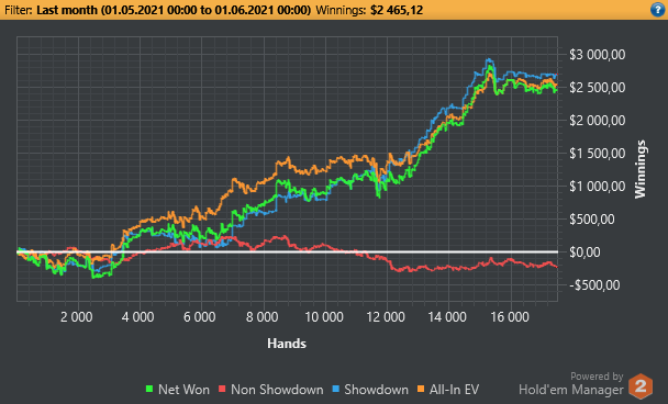 При этом боролся с отсутсвием мотивации играть во второй половине месяца. Отгулял свое ДР, при этом впервые сделал его по моим меркам крутым, и после него неделю вообще не хотелось играть, заходил в лобби посмотреть что по столам и закрывал клиент.