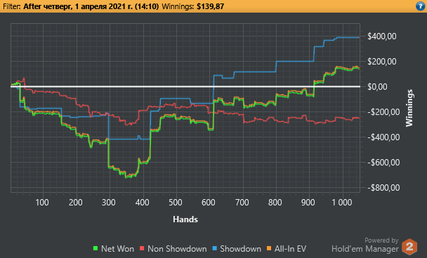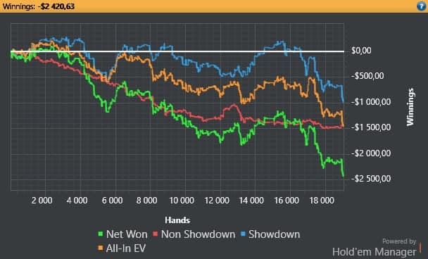 При этом когда тебя по всем фронтам бьют - сомнения в своей игре конечно появляются и где то начинаю зажиматься где то недоблефовывать, где то переблефовывать кароче как снежный ком все идет.