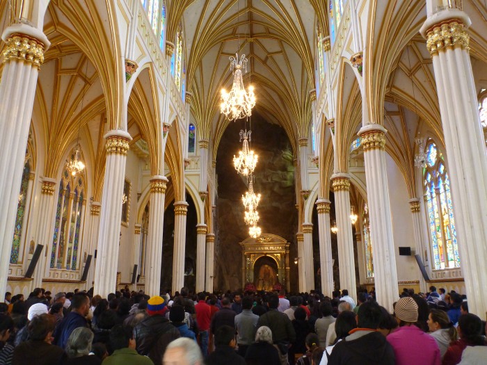 На следующий день надо было возвращаться назад. По пути решили заскочить в еще одно место - Las Lajas. Мне где-то в интернетах попадались фотографии. И действительно, оказалось довольно интересно внутри был аншлаг картина характерная скорее для Перу, чем для Колумбии