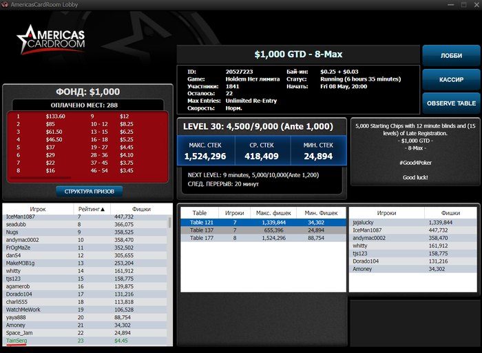 Скорее всего буду выводить 100$ и оставлю 20$ на маленькие турниры. Вряд ли этот блог будет как Гриндера, который желает выполнить марафон. Скорее я буду делать депы под хорошие турниры и пытаться показать хорошую игру на 3-4 столах. Надеясь отыграть в 0 или плюс)