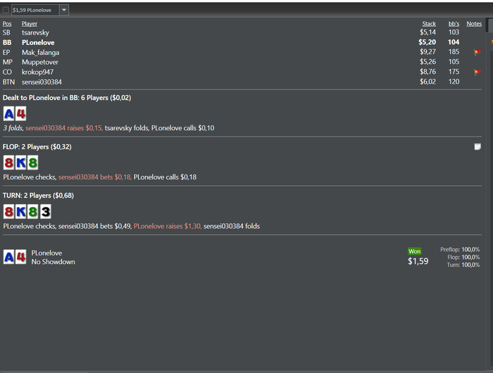 Но играть стал еще чуть лузово, меньше колов 3-бета от регов стал делать, меньше сквизить, если есть открытие от МП.
