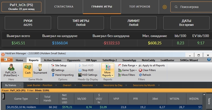 Но нет - просто везучий черт, который всех вздрючил, ловя свои гатшоты и сеты.