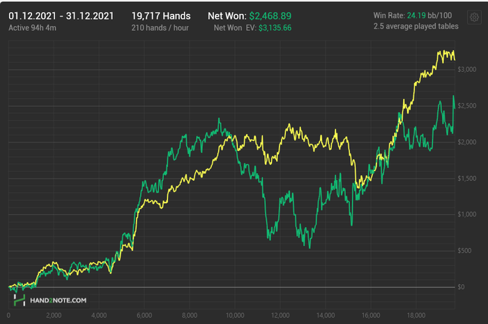 Канун нового 2022го года я встречаю с широчайшей улыбкой на лице. Я зарабатываю покером.