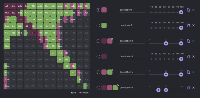 Суть в том, чтобы видеть ситуацию рэнж vs рэнж визуально во время игры. Это поможет лучше оценивать эквити против диапазона соперника и прибыльность своих линий.