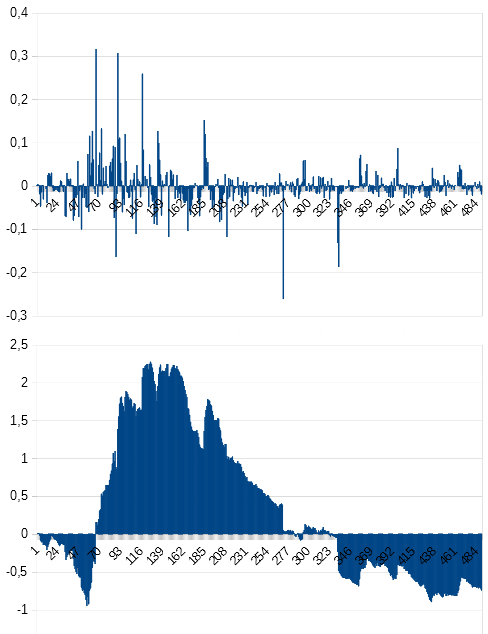 согласиться, то первый вариант мне кажется притянутым за уши. прошлая цена конечно же влияет на будущую, потому что движения цены формируют настроение участников, которые определяют движения рынка. и тут мне кажется, что замена первого тезиса на второй это тот же стромэн, а предположение о верности первого на основании верности второго это слипперислоуп аргумент. между будущей ценой и прошло не тупая прямая (положительная или отрицательная обратная) связь, а сложнейшая комплексная. но она есть. это не аксиома, а такой же тезис или предположение, как и тезис, что связи нет или что цена имеет случайный характер. и и те, и другие требуют доказательства. и мы к нему наконец-то переходим