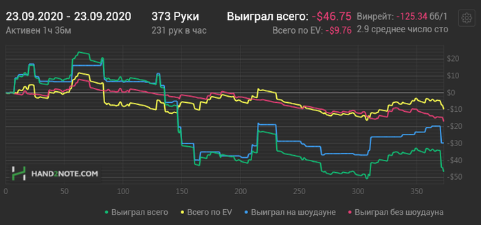 Да только прикол и есть в том что реги, играющие больше сотни часов в месяц и ловят этот переап, а простым любителям как его ПОЙМАТЬ??? Поиграл все лето, по 3-4 часа в день, да прошёл нл2, 5 даже на 10 закрепился и все пару сессий без кеш аут игры и у меня в банкроле по -50 100бачей при евхе всегда в+. Когда я в месяц на нле 5-10 делал больше 500 рейка была более менее равная игра без кешаута, но за последний месяц от силы нахожу время на 2-3 дня игры в неделю по пару часов, и уже целый месяц жру дерьмо при выставлениях 80%+ и игре без кешаута. Сорри за спам но просто заебало уже, захожу поиграть для удовольствия время еле нахожу на игру а в итоге жру дерьмо и порчу себе настроение, а от гсч пс вообще тошнит, это единственный рум в котором разное гсч в спинах кеше и мтт, штук 50-100 мтт ХА сыграл от 5.5 до 16.5 и скажу честно в каждом из них 50% это тупо боты либо люди с прогами(одинаковые рейзы, действия на постфлопе даже блефы у каждого 3го просто однотипные. Не знаю зачем сюда это пишу но я удалил эту помойку пс. Попытаю удачу на покерке.