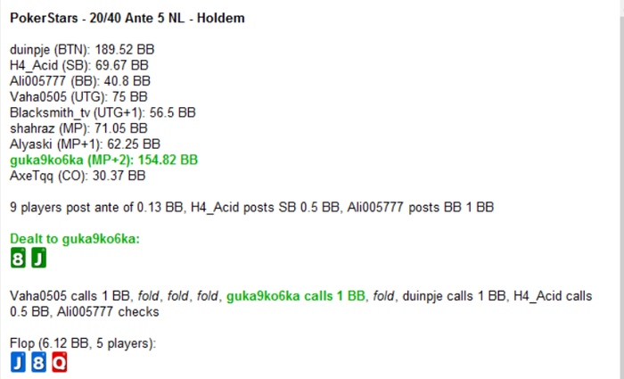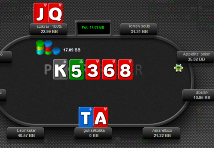 PokerStars.es было сыграно 3 турнира: Была вот такая раздача, на европейских старзах оппоненты не умеют сбрасывать карты, особенно в ББ, находясь без позиции , с одномастным коннектором, я решила не сквизить, а рызыграть постфлоп и на тёрне мне пришлось сдаться, правильны ли были мои действия ??